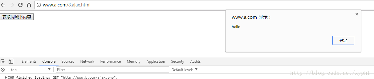 這時候我們在打開當前頁面 http://www.a.com/7.ajax.html ,點擊按鈕我們發現請求到了數據;