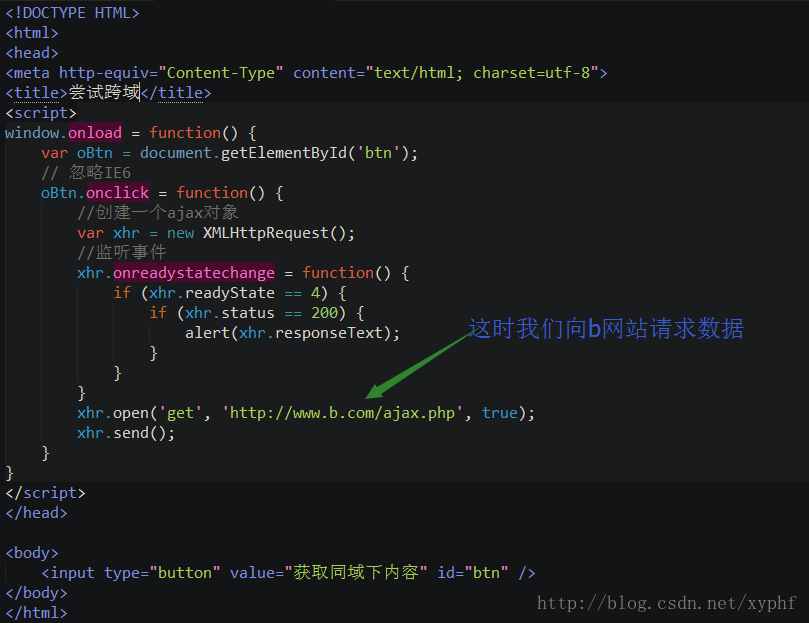 xhr.open('get', 'http://www.b.com/ajax.php', true);