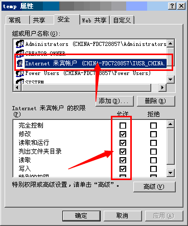 未指定的錯誤,于是我又將這個文件放到另一臺機器上運行,正常,一點問題沒有,但在這臺機器上就出問題。這樣就排除了asp文件問題了。于是就想到,重裝IIS。重裝后,還是一樣。最后發現是硬盤的分區有問題,那些安裝好IIS后就能asp程序的電腦是fat32分區,這臺是ntfs分區。需要給c:\windows\temp給予everyone所有權限。這樣再運行就正常了。