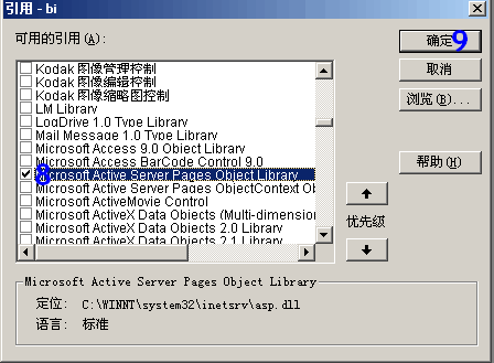點擊引用,然后選擇其中的Microsoft Active Server Pages Object Library.