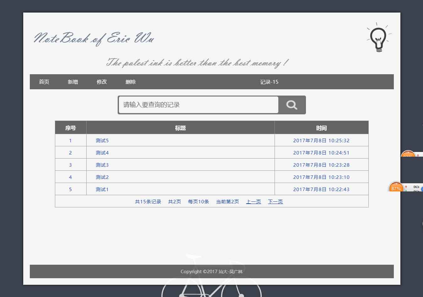 這段時間做了個小項目,包含了翻頁和富文本編輯器Ueditor的兩個知識點,Ueditor玩的還不是很深,打算玩深后再寫篇博客。
