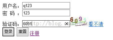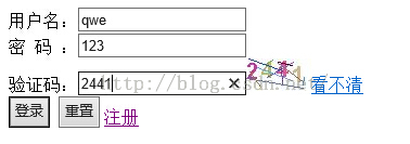 驗證碼:input type="text" name="checkCode">img src="/LOGIN/immg" id='imgid'>a href="javascript:flush()">看不清/a>//需要重寫一個js進行刷新