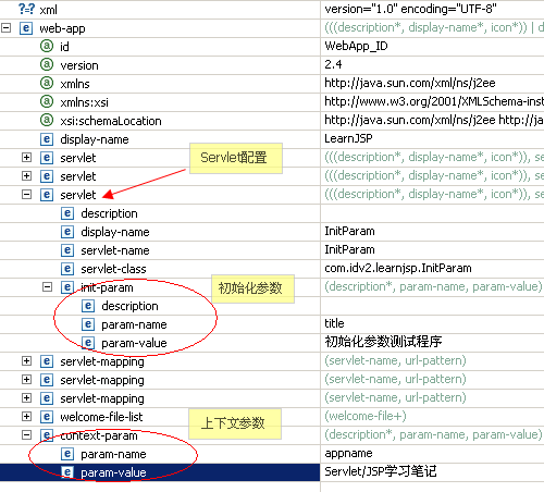 而上下文參數(shù)就沒這么方便,只能通過手工編輯web.xml來添加了。 好在Eclipse提供了方便的XML編輯器, 打開web.xml之后即可看到各個Servlet的配置情況, 右鍵單擊最頂層的“web-app”元素,選擇Add Child->context-param, 然后分別修改 param-name 和 param-value 即可。