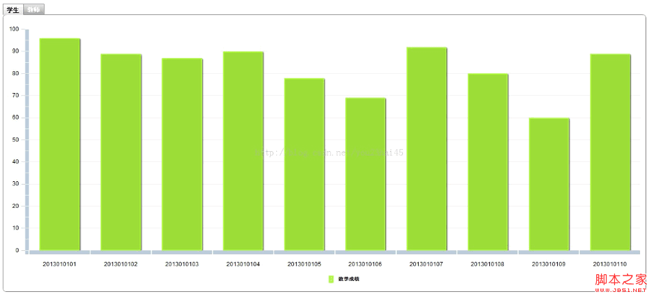 mx:ColumnSeries displayName="數(shù)學(xué)成績" xField="sno" yField="math" fill="{sc1}" stroke="{s1}"/>