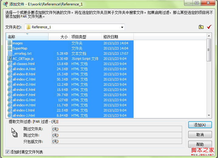 點擊 文件->添加文件,如下,將html幫助文檔的所有文件添加進去,我的文檔都放在Reference_1文件夾內部