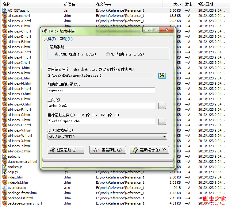 我在《Flex幫助文檔制作(ASDoc——html篇)》中講解了如何將自己的flex項目提取里面的注釋生成網頁形式的幫助文檔,現在也比較流行這種方式,不過很多公司產品化的時候還需要提供chm格式的幫助文檔,好像flex里面不能直接生成chm的文檔,如果有讀者會的話請聯系我,我也學習一下,我這里主要講解將生成的網頁的文檔轉化為chm的格式。花了一天時間找了很多個軟件,嘗試了好久,很多軟件并沒有那么好用,我這里推薦FAR以及RoboHelp,不過RoboHelp破解版不好找,并且英文版的,我也不是怎么懂,還是FAR方便一些。FAR的安裝很簡單,直接跳過了。