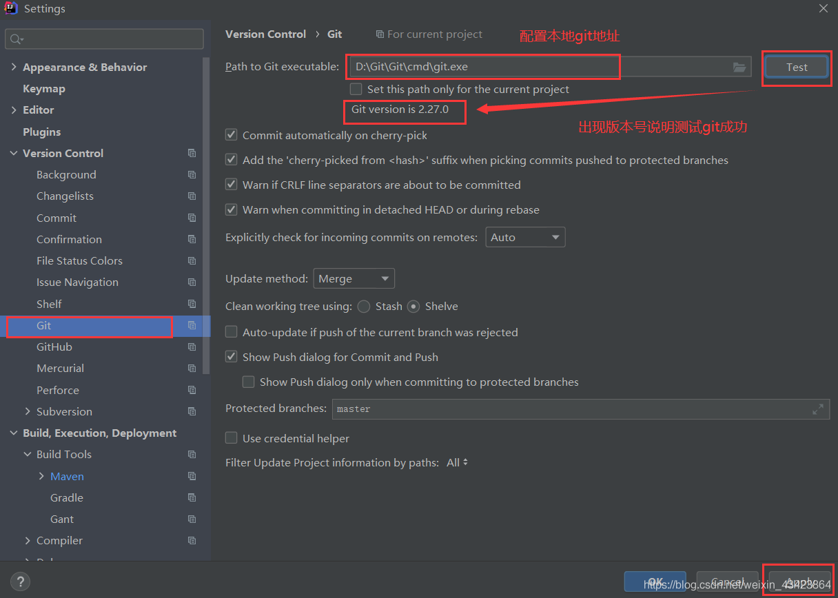先配置好git的本地地址,然后test,出現版本號說明測試成功!