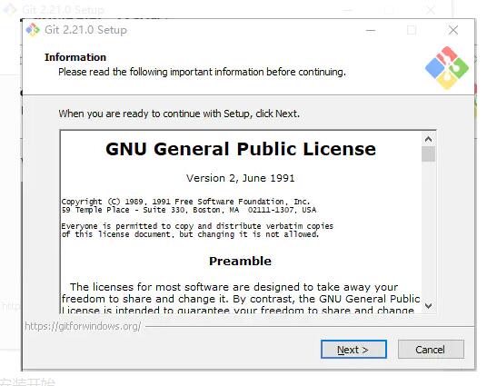 第一步:雙擊下載后的Git-2.21.0-64-bit.exe,開始安裝
