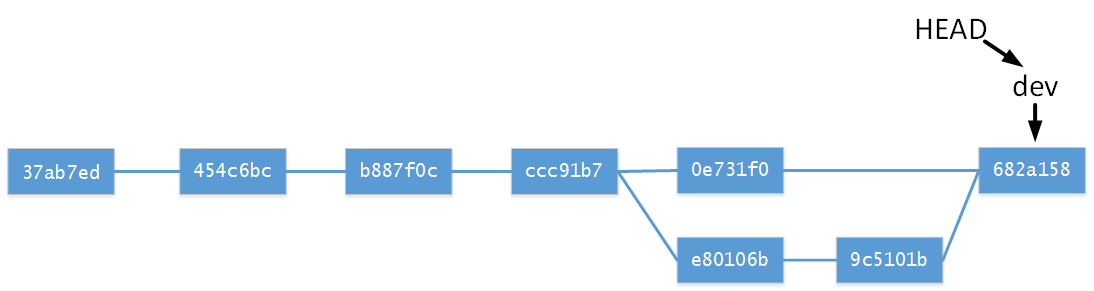 根據提交歷史,可以看出圖中所有分支合并都采用merge的方式,具體merge是怎么操作的,可以閱讀下邊文章。