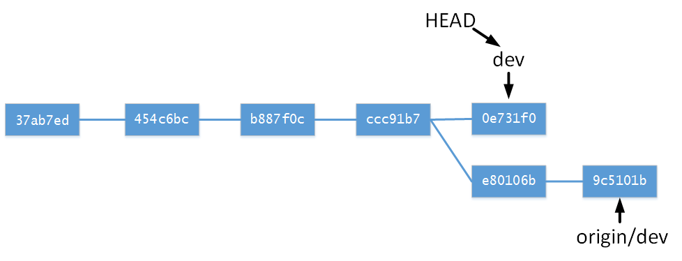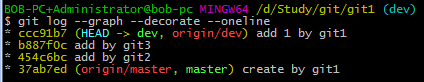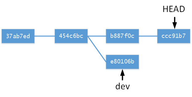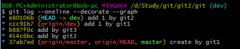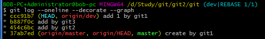 分支樹為(此時分支為(no branch, rebasing dev)):