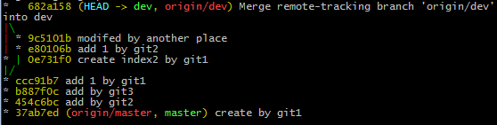 git1執行merge操作,最終分支樹如下: