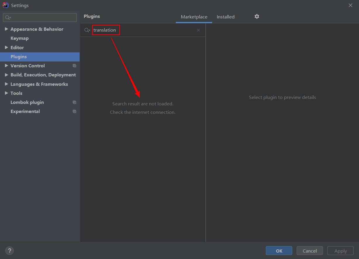 點擊OK,然后關閉IDEA設置頁后重新打開設置頁搜索Translation即可