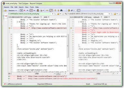 Beyond Compare可以很方便地對比出兩份源代碼文件之間的不同之處,相差的每一個字節用顏色加以表示,查看方便,支持多種規則對比。