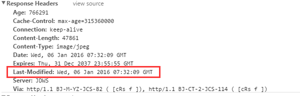京東頁面的資源請求,返回的repsones header就只有Last-Modified,沒有ETag: