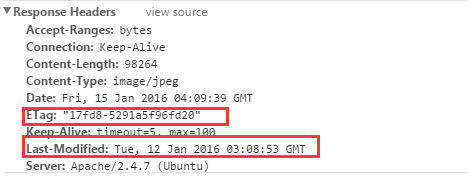 1)瀏覽器第一次跟服務器請求一個資源,服務器在返回這個資源的同時,在respone的header加上ETag的header,這個header是服務器根據當前請求的資源生成的一個唯一標識,這個唯一標識是一個字符串,只要資源有變化這個串就不同,跟最后修改時間沒有關系,所以能很好的補充Last-Modified的問題: