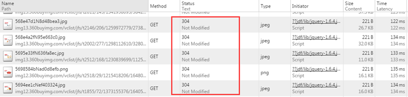 當瀏覽器對某個資源的請求沒有命中強緩存,就會發一個請求到服務器,驗證協商緩存是否命中,如果協商緩存命中,請求響應返回的http狀態為304并且會顯示一個Not Modified的字符串,比如你打開京東的首頁,按f12打開開發者工具,再按f5刷新頁面,查看network,可以看到有不少請求就是命中了協商緩存的:
