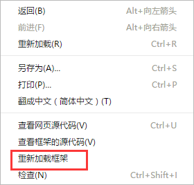 5)如果資源引用的頁面,被嵌入到了一個iframe里面,可以在iframe的區域右鍵單擊重新加載該頁面,以chrome為例: