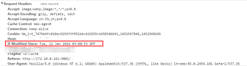 2)瀏覽器再次跟服務器請求這個資源時,在request的header上加上If-Modified-Since的header,這個header的值就是上一次請求時返回的Last-Modified的值: