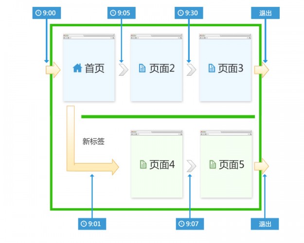 下圖是一個普遍的用戶瀏覽網站場景,通過這個場景我們能夠理解多標簽頁面瀏覽帶來的影響……