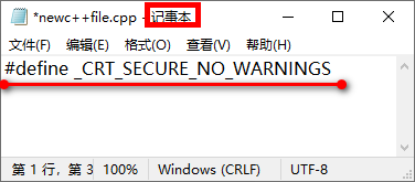 (2)在VS2019的安裝路徑下找到“newc++file.cpp”這個(gè)文件,用記事本的方式打開(kāi),并把這行代碼復(fù)制粘貼上去,然后保存即可,這樣以后每次新建.c源文件的時(shí)候這行代碼就會(huì)自動(dòng)出現(xiàn)在第一行。
