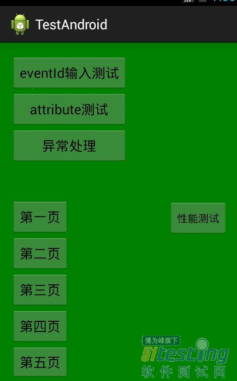 測試背景:由于需要對產品的SDK做接口測試,而這些接口需要在app里面調用,故開發(fā)了一個簡單的android應用(如圖),用來調用需要測試的接口,app中的每個按鈕其實都是一個測試模塊。