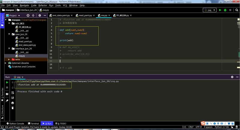 定義一個add函數,函數的功能是實現兩個數相加