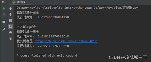 咱們基于原來的count_time函數外部再包一層用于接收參數的count_time_args,接收回來的參數就可以直接在內部的函數里面調用了。上述代碼執行效果如下: