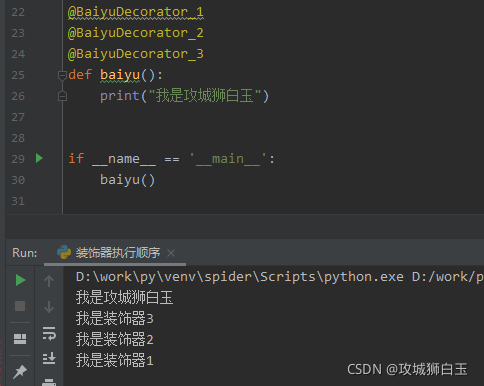 baiyu() # 用語法糖之后,就可以直接調用該函數了
