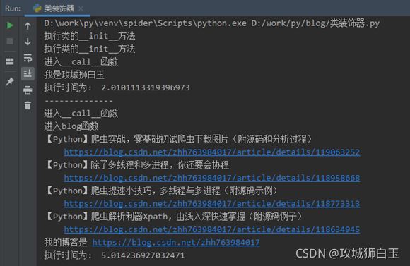 上面咱們一起學習了怎么寫裝飾器函數,在python中,其實也可以同類來實現裝飾器的功能,稱之為類裝飾器。類裝飾器的實現是調用了類里面的__call__函數。類裝飾器的寫法比我們裝飾器函數的寫法更加簡單。