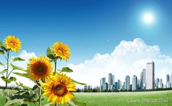 之后用這個直方圖數據在另外一個圖像中用 Meanshift 算法去找向日葵。