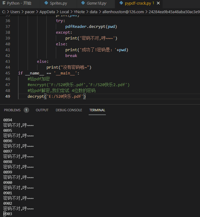 引用pypdf2模塊,調用pdfReader.decrypt('密碼'),通過不停的遍歷我們生成的密碼。