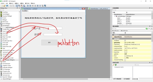 不同控件有不同的功能,大家可以自己拖動(dòng)到mainwindow上看看它們都能干些什么。