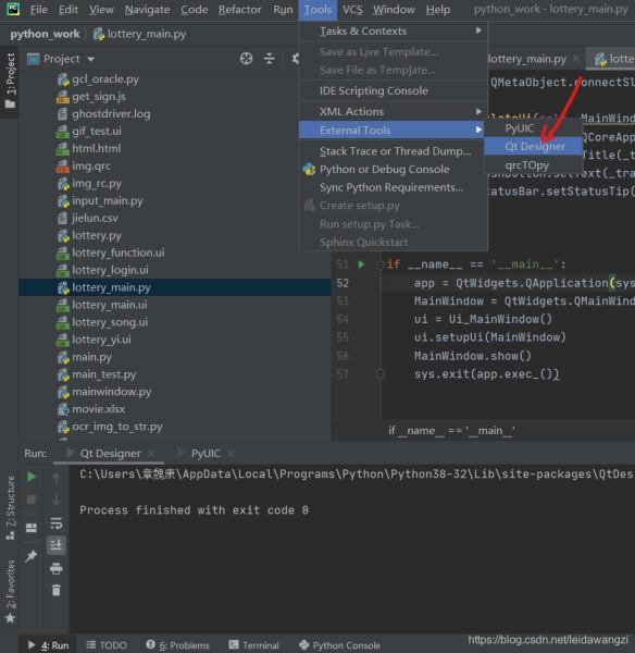 還記得我們在pycharm之前創(chuàng)建的exteranl tools嗎?點(diǎn)擊打開designer。