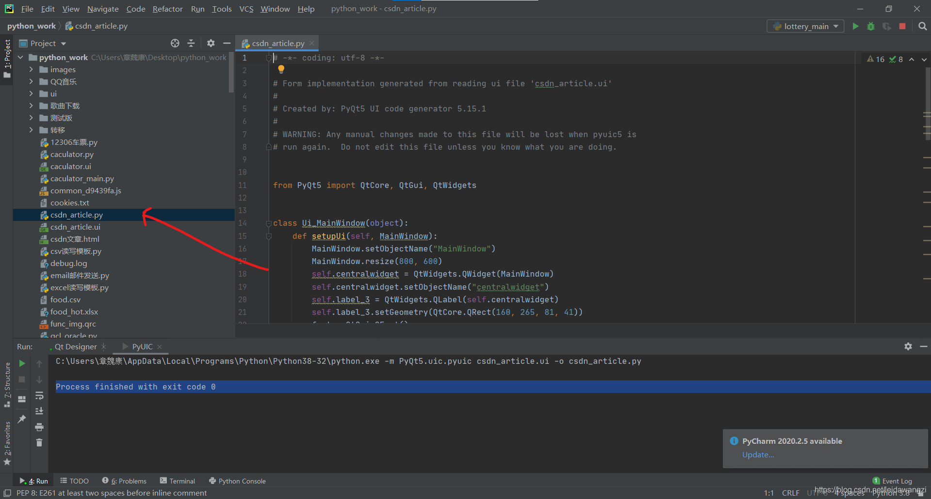 即表示轉(zhuǎn)換完成,在當(dāng)前目錄下可以找到csdn_article.py文件。