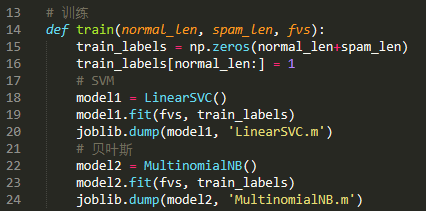 我們使用scikit-learn機器學習庫來訓練分類器,模型選擇樸素貝葉斯分類器和SVM(支持向量機):