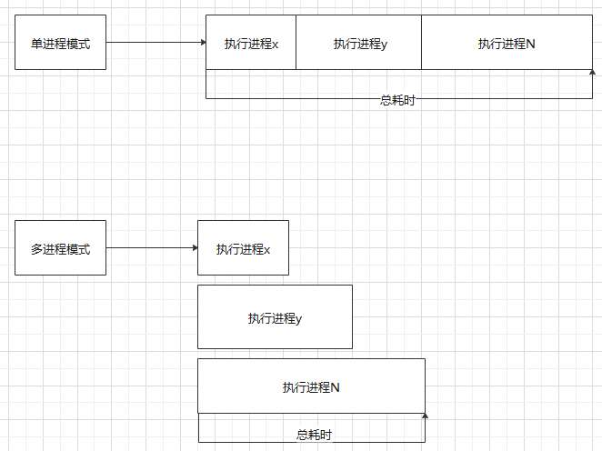 多個(gè)進(jìn)程并排執(zhí)行,總耗時(shí)就是最長(zhǎng)耗時(shí)的那個(gè)進(jìn)程的時(shí)間。