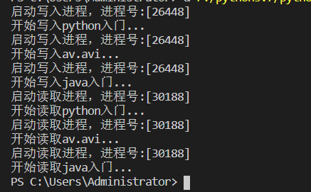 print('啟動(dòng)寫(xiě)入進(jìn)程,進(jìn)程號(hào):[%d]'%getpid())