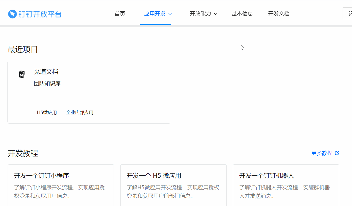 登錄「釘釘開發(fā)者后臺」,選擇「應(yīng)用開發(fā)」——「企業(yè)內(nèi)部開發(fā)」—— 「機(jī)器人」