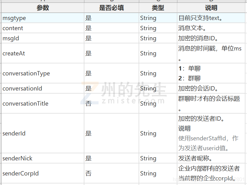 目前釘釘機(jī)器人只支持text文本內(nèi)容的消息接收,所以在此處我們只對消息類型為text的消息進(jìn)行處理。