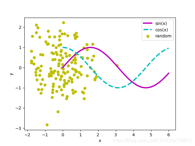 使用plt.legend()函數以及繪圖函數的label可選參數,可以添加圖例: