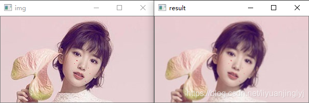 可以看到,這里我們將臉上的紅點去掉了。需要特別注意的是,濾波核的大小必須是奇數,矩陣中心點向外衍生必然是奇數,不信可以隨便矩陣取一點試試。