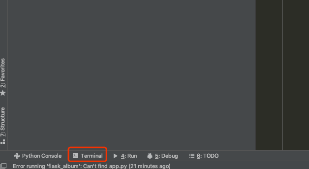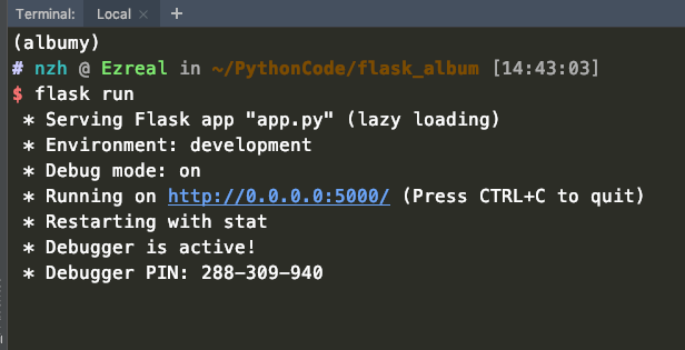 然后打開pycharm的終端窗口。執(zhí)行flask run即可