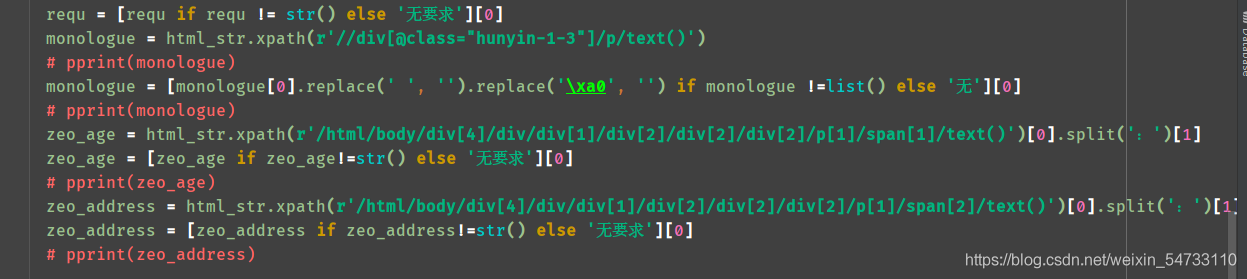 monologue = html_str.xpath(r'//div[@class="hunyin-1-3"]/p/text()')