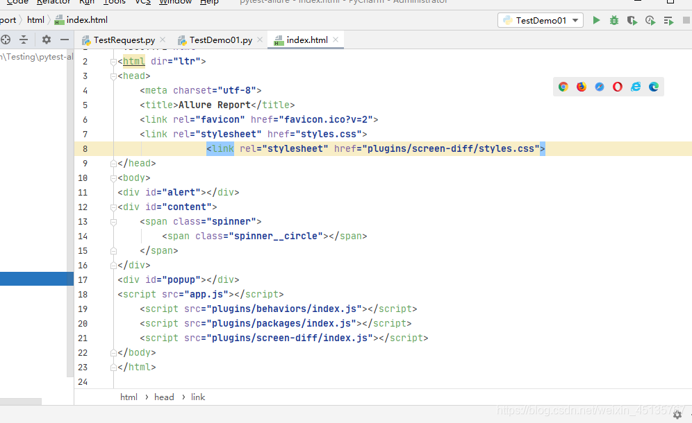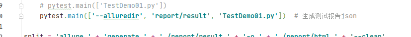 運行的時候加上 pytest.main ( ‘–alluredir', ‘report/result', ‘TestDemo01.py']) 會在當前文件夾創建一個report文件夾,在report文件夾下創建result