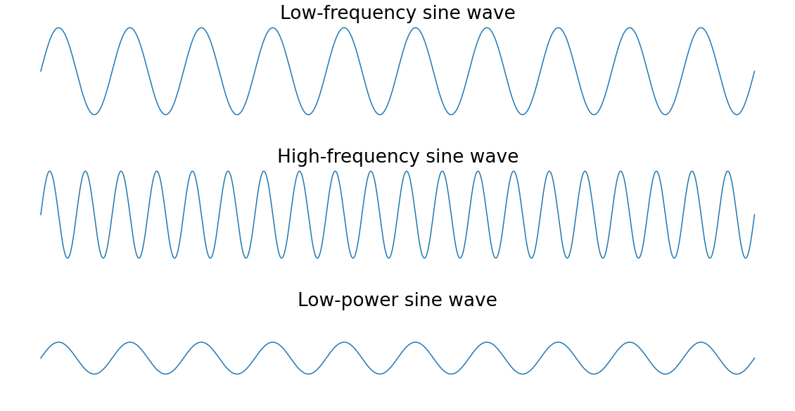 下圖是一些正弦波的頻率和功率的直觀演示: