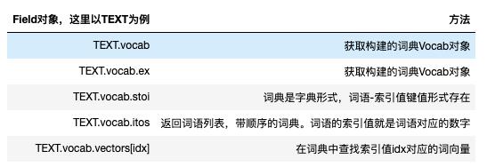 TEXT.buildvocab(maxsize,minfreq,unkinit) 構建詞典,其中
