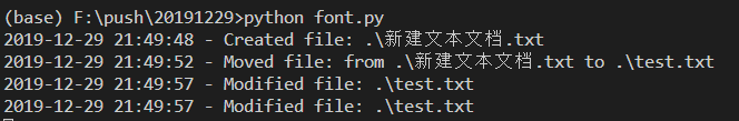 如果你不帶參數地運行該腳本,就是要監控腳本文件所在的文件夾,如果要監控其他文件夾,記得運行時帶文件夾的路徑參數,如: