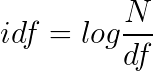 為了獲得出現詞項T的所有的文檔的數目,我們需要引進一個文檔頻率df。由于df一般都比較大,為了便于計算,需要把它映射成一個較小的范圍。我們假設一個文檔集里的所有的文檔的數目是N,而詞項的逆文檔頻率(IDF)。計算的表達式如下所示: