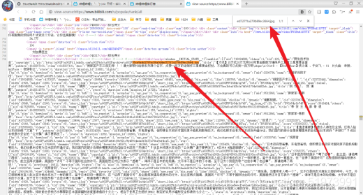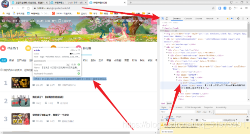 (4)網頁分析——選中頁面中視頻的標題,發現標題內容存放在一個a標簽的文本內容中,剩下的視頻信息尋找方式同上述。