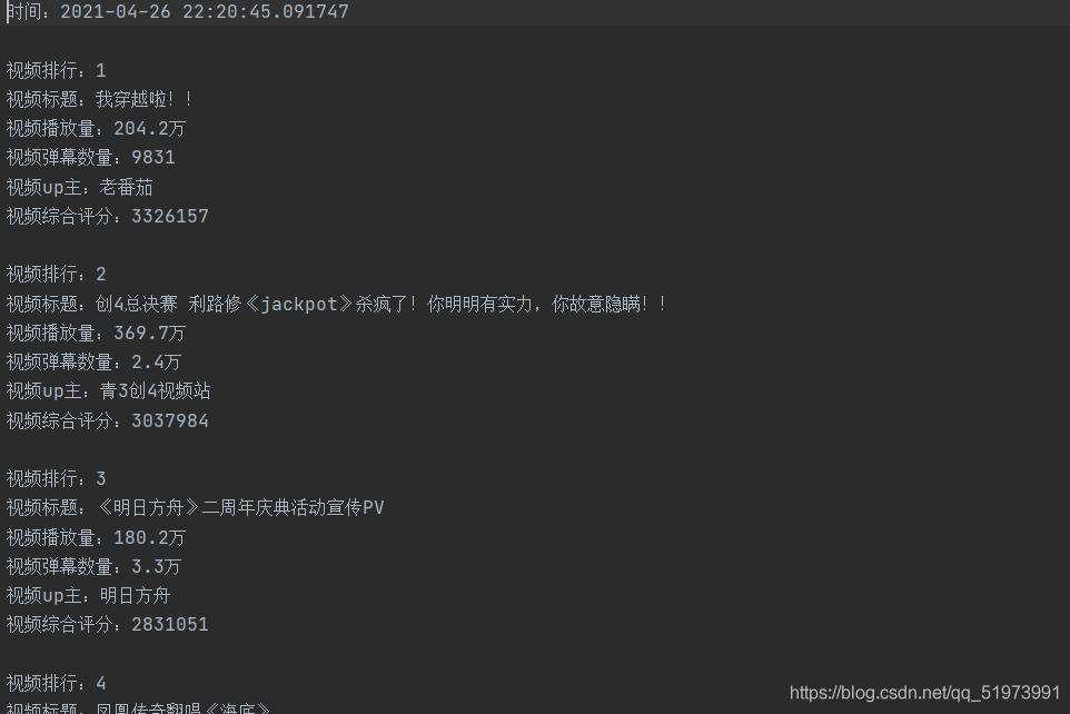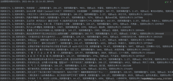fp.write('b站視頻排行榜,'+'時間:'+str(datetime.datetime.now())+'\n')